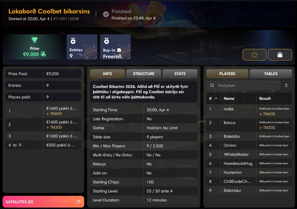 Pókersamband Íslands var stofnað árið 2007 og hefur haldið Íslandsmót í póker og önnur pókermót allt frá árinu 2009. Gegnum árin hefur úrval móta aukist og því fleiri sem finna sér eitthvað við sitt hæfi. Hér á vefnum má finna úrslit og upplýsingar úr mörgum af mótum okkar gegnum tíðina.